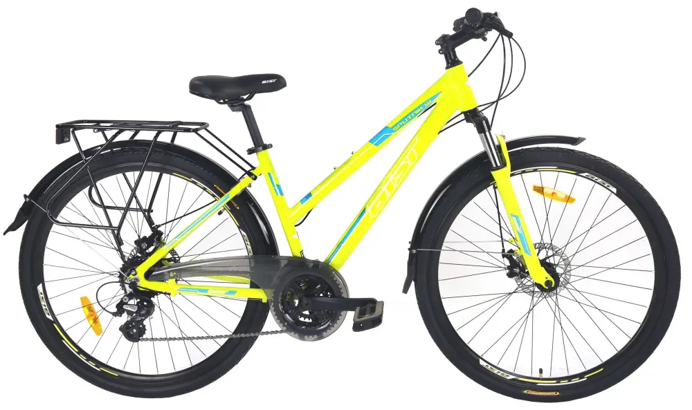Хорош как на пересеченной местности, так и на асфальтовых дорогах. Для защиты от грязи оборудован полноразмерными щитками, для вещей есть багажник. Легкая рама, дисковые тормоза и 24 скорости сделают путешествие не только комфортным, но и динамичным. Девочкам скучно не будет.